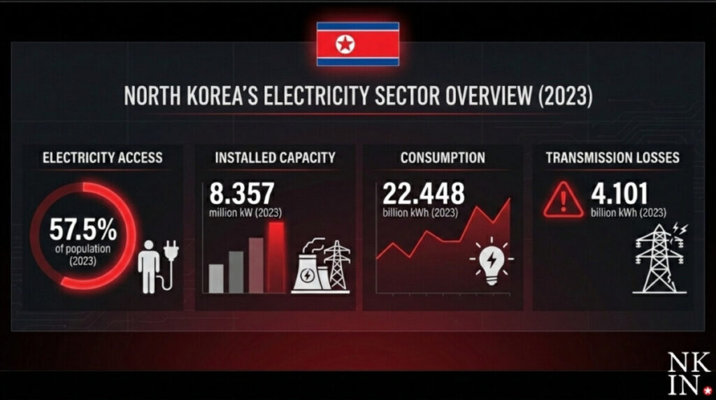 The country’s installed generating capacity stands at 8.357 gigawatts, with annual production of about 22.4 terawatt-hours—roughly 4 per cent of South Korea’s output, according to the CIA World Factbook. Even that limited supply is undermined by inefficiencies: 18.3 per cent of all generated power is lost in transmission before it reaches users.